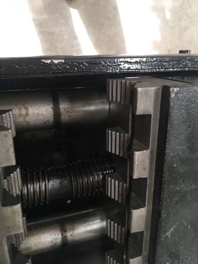 在滚丝机选择中,您常常被蒙蔽了双眼,今天只讲一个台钳部分的区别:A型:钢板双滑杠,钳口部分为40Cr整批锻造,真空炉淬火;B型:整批铸铁滑道台钳,钳口部分为铸铁,从图中可以看出钳口夹钢筋部分明显区别!一套台钳成本差了200元!不要再问为什么有的便宜?明天我们继续讲滑块部分!
